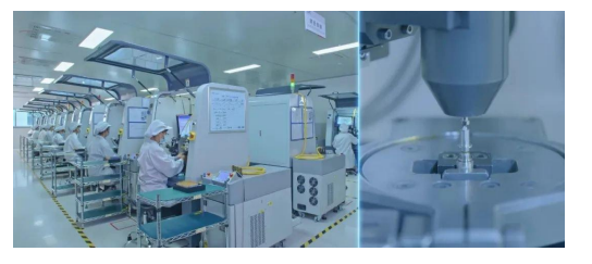 现代化工业无尘车间,工作环境干净整洁,恒温恒湿,精密仪器生产需要穿无尘服。