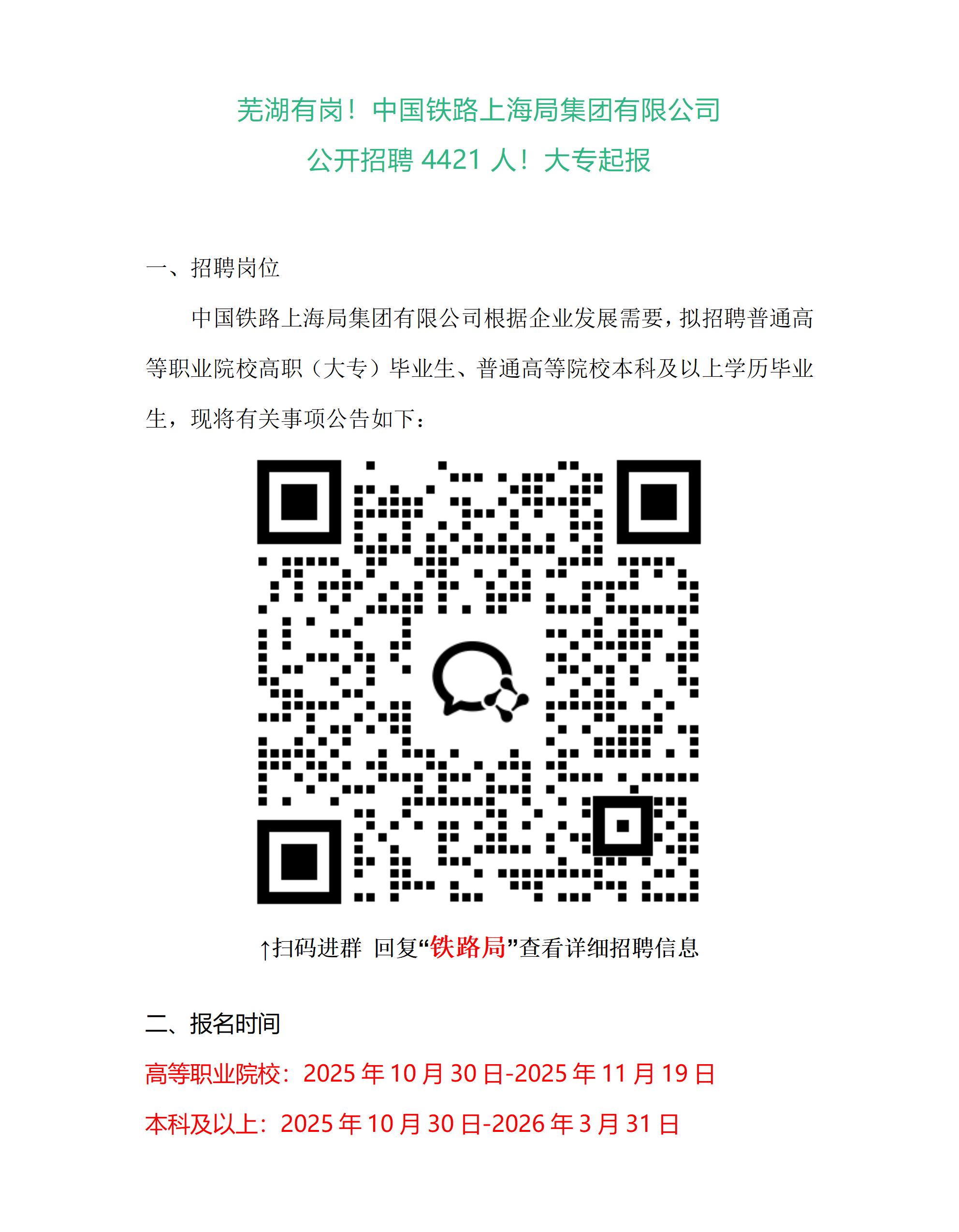芜湖有岗!中国铁路上海局集团有限公司 公开招聘4421人!大专起报